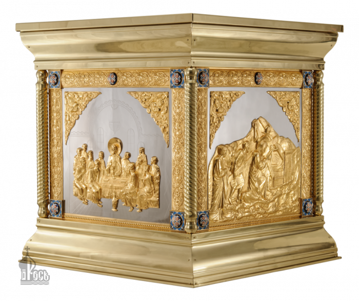 Nowadays, coverings for the holy table are not only made of fabric but can also come in the form of wooden or metal cases, adorned with carvings, precious stones, and cast elements. Our church production offers you holy tables of various types and sizes made of metal, wood, and marble, as well as a variety of coverings with gilding and nickel plating