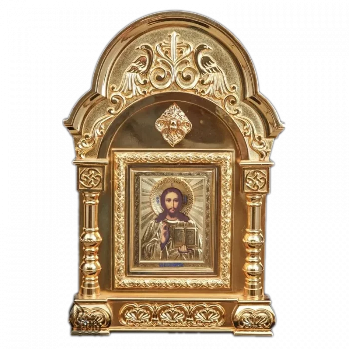 The creation of kiots is a true art, as craftsmen use the finest materials in their work, ensuring that the final result becomes a true adornment for the church. For example, a marble floor kiot — the incredible grandeur of this item will not only protect the icon but also please the eyes of the parishioners. The production involves various techniques, as each craftsman is unique in their work, but the end result always amazes with its beauty. There are floor, wall-mounted, and tabletop types. A floor kiot for an icon can be purchased for the home, not only to store the icon but also to use the drawers for storing candles, Holy Water, and lamp oil. When choosing custom-made kiots, you can select a design that best suits your interior and helps create a special atmosphere