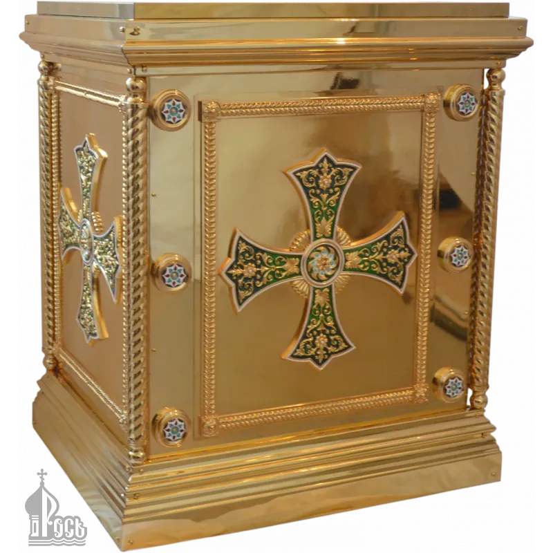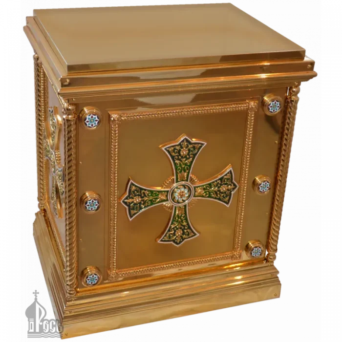 The sides of the panikhida table are decorated with scenes from biblical stories, carved patterns, and crosses. On top, there are openings for placing candles, as well as a Crucifixion with Golgotha. On memorial days, parishioners, in addition to lit candles, place food and wine on such tables, as it is customary to make donations to the church during this time. You will find the panikhida table, as well as the icon table, made of wood or metal, in our catalog, available in different sizes, with varying numbers of candle holes and different decorative designs