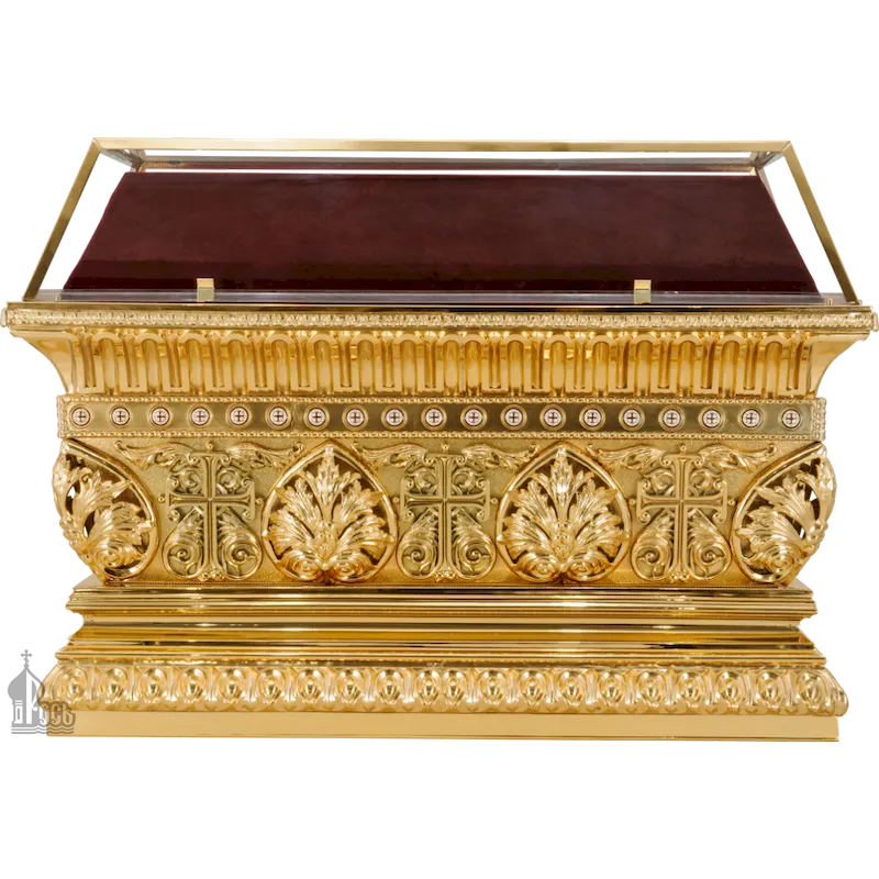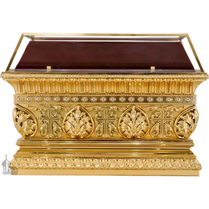 Our site features shroud tombs made from elite tree species. The church plate is established on special legs. The tomb perfectly combines with the velvet of red or blue. The choice of colour scale is connected with the way of burial of the Most Holy Mother of God and the Lord Our Jesus Christ. Shroud rises for the worship of Orthodox Christians in the Great and Assumption post