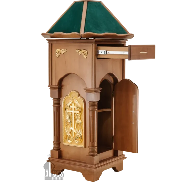 Обладая безусловной практичностью и удобством, аналои прочны и устойчивы. Кроме того, они всегда радуют глаз прихожан красивым внешним видом, и при необходимости можно выбрать, например, деревянную подставку, декорированную вставками из латуни и красивых тканей.