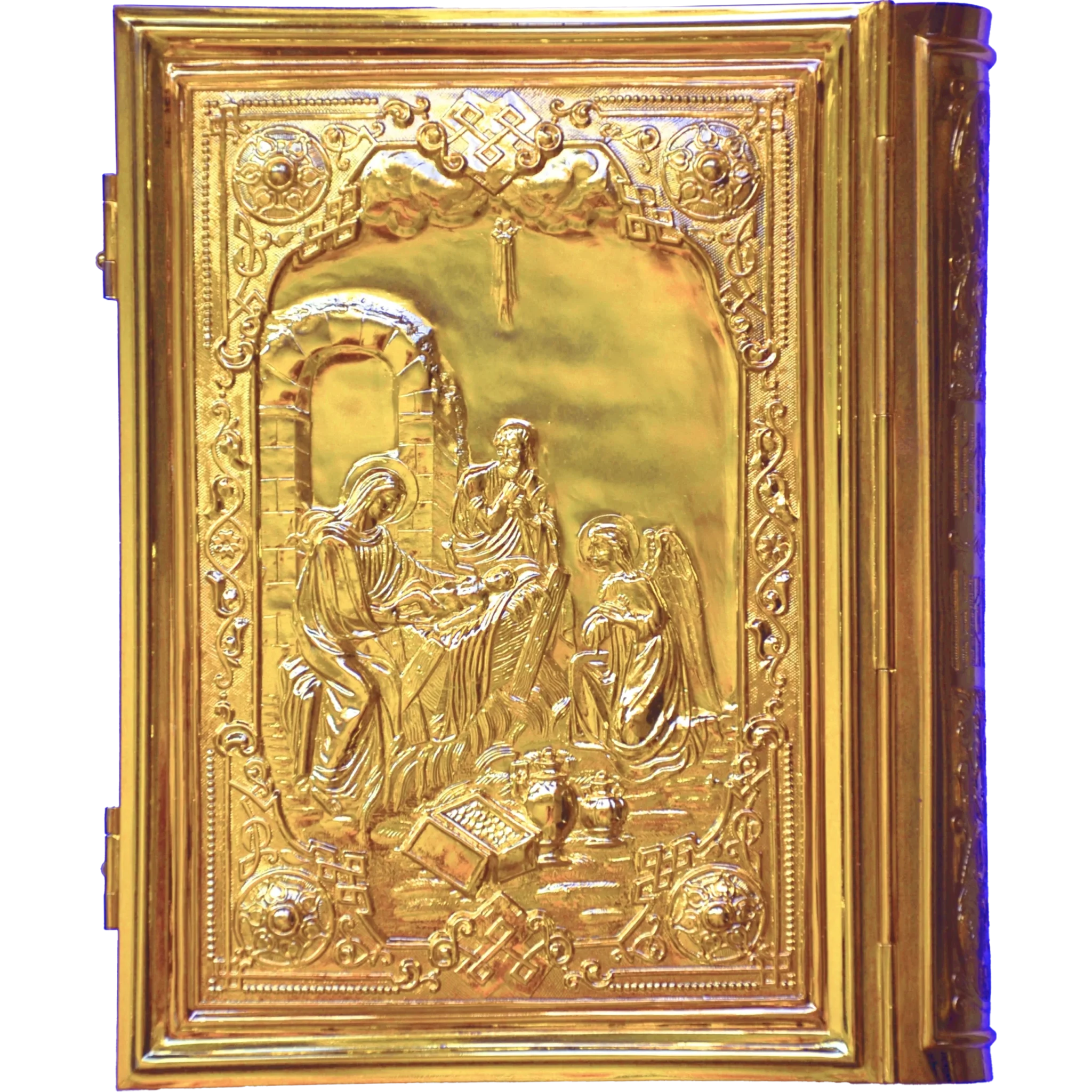 В нашем интернет-каталоге можно купить Евангелие в разном окладе, цена на который зависит от размера и используемого материала. Мы предлагаем вашему вниманию книги в декоративном переплете, выполненные из металла, что несомненно более практично, а значит продлит срок их службы. Напрестольное Евангелие в окладе можно купить выполненное из меди и латуни, а также бархата, с использованием золочения и серебрения