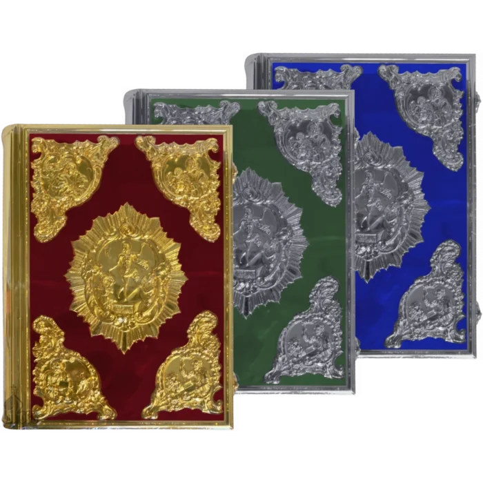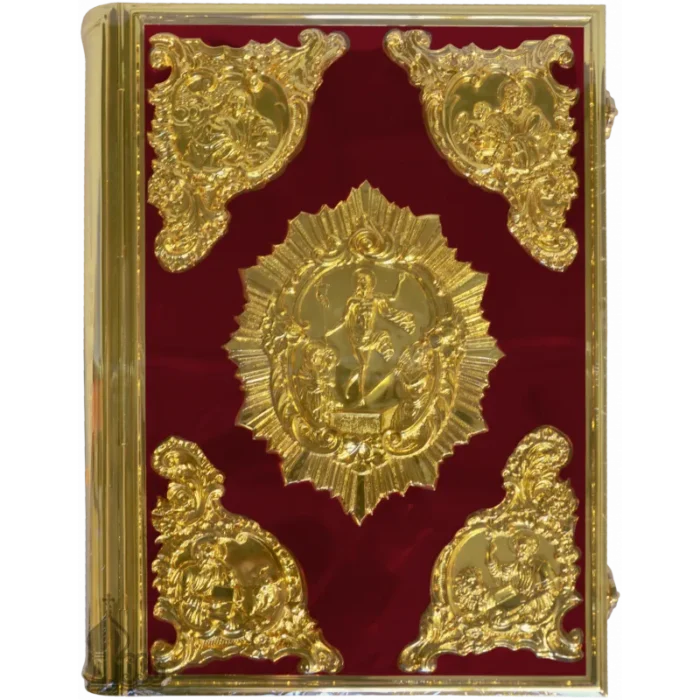 В нашем интернет-каталоге можно купить Евангелие в разном окладе, цена на который зависит от размера и используемого материала. Мы предлагаем вашему вниманию книги в декоративном переплете, выполненные из металла, что несомненно более практично, а значит продлит срок их службы. Напрестольное Евангелие в окладе можно купить выполненное из меди и латуни, а также бархата, с использованием золочения и серебрения