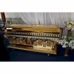 На нашем сайте представлены гробницы под плащаницу, выполненные из элитных пород дерева. Устанавливается утварь на специальных ножках. Гробница прекрасно сочетается с бархатом красного или синего цвета. Выбор цветовой гаммы связан с чином погребения Пресвятой Богородицы и Господа Нашего Иисуса Христа. Плащаница выносится для поклонения православных христиан в Великий и Успенский пост