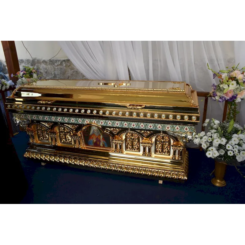 Церковные гробницы или ковчеги — ящики со святыми мощами в форме гроба. Устанавливаются они в храме на подставке. В мастерской применяются следующие материалы для изготовления: