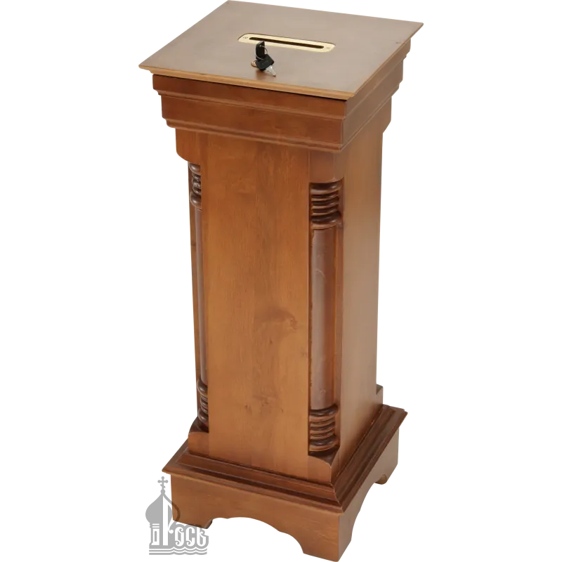 В каталоге присутствуют модели из прочных материалов: дерева, латуни, стали. Для декорирования изделия применяется лакировка. Часто храмовая утварь для пожертвований изготавливается в праздничном оформлении с позолотой.