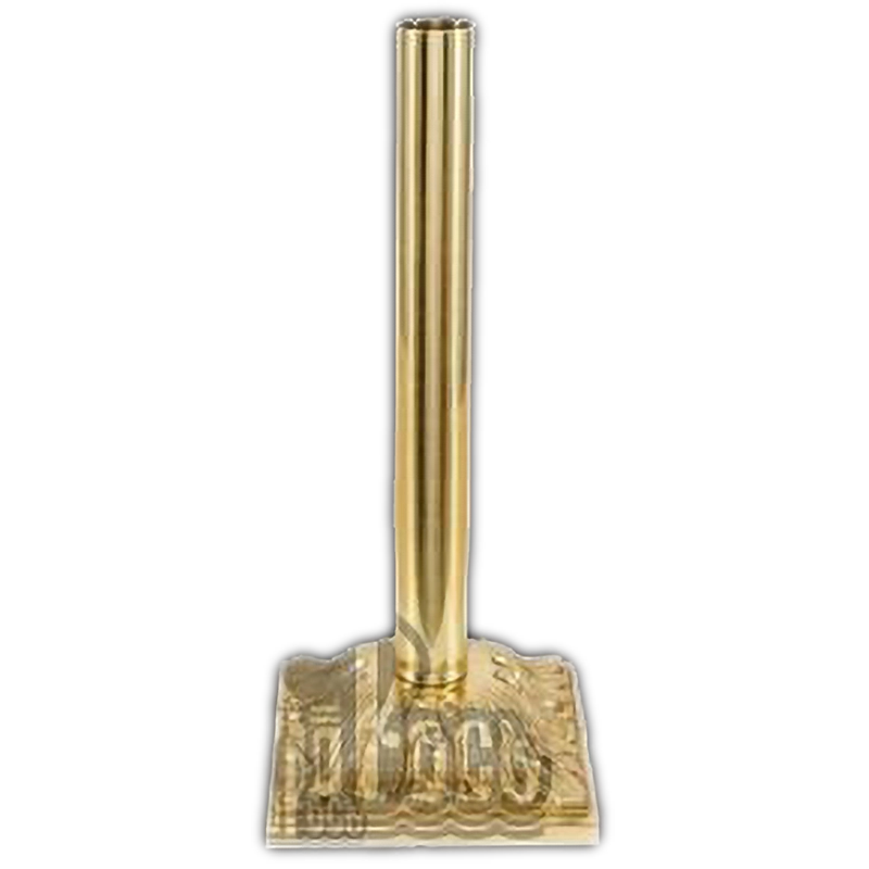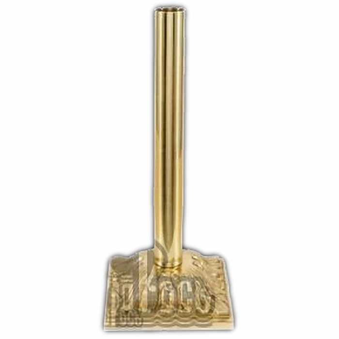 Подставка под хоругви находится в священной церковной зоне, где располагаются храмовые атрибуты. Она производится из латуни, имеет пирамидальную форму. На вид подставка блестящая, светлая, что дополняет эстетику в церкви. С внешней стороны украшена узорами