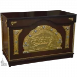 Сейчас же облачения на престол бывают не только тканевыми, но и в виде деревянного или металлического футляра, украшенного резьбой, драгоценными камнями и литыми элементами. Наше церковное производство предлагает вам престолы разных видов и размеров из металла, дерева и мрамора и различное облачение, выполненное с золочением и никелированием