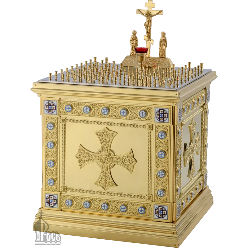 Стол панихидный деревянный на 88 свечей с деревянной тумбой и позолоченными элементами №1
