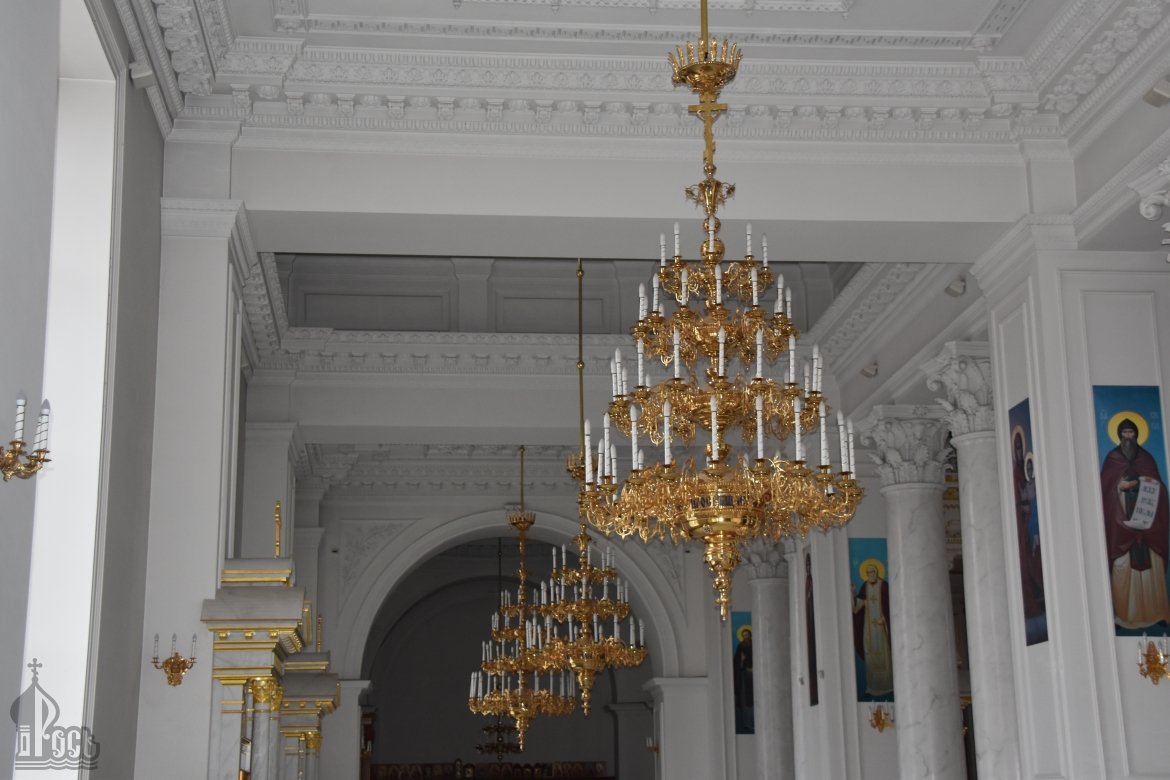 Семиярусное паникадило в Успенском соборе Почаевской лавры