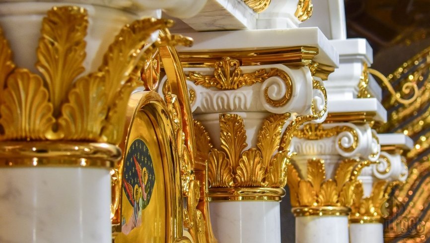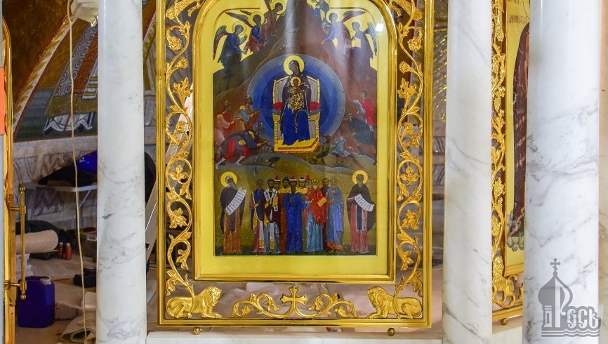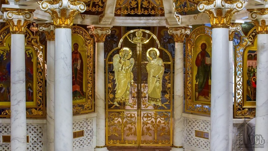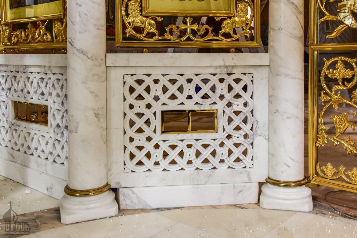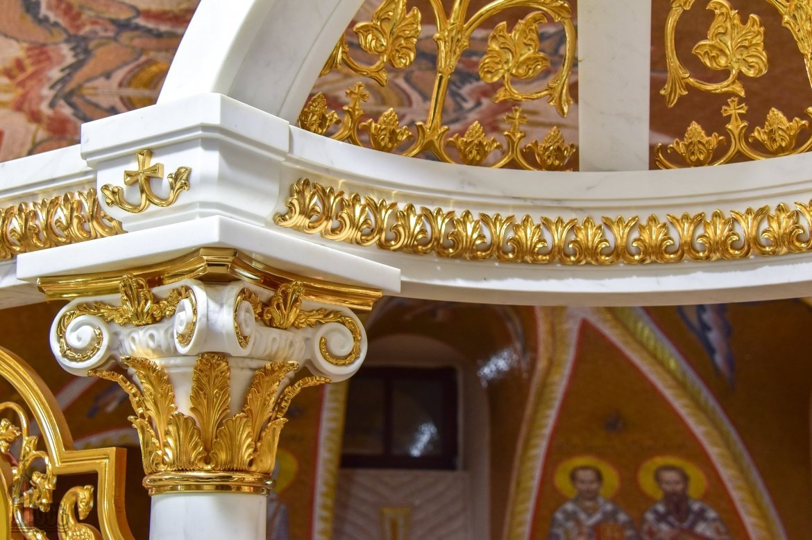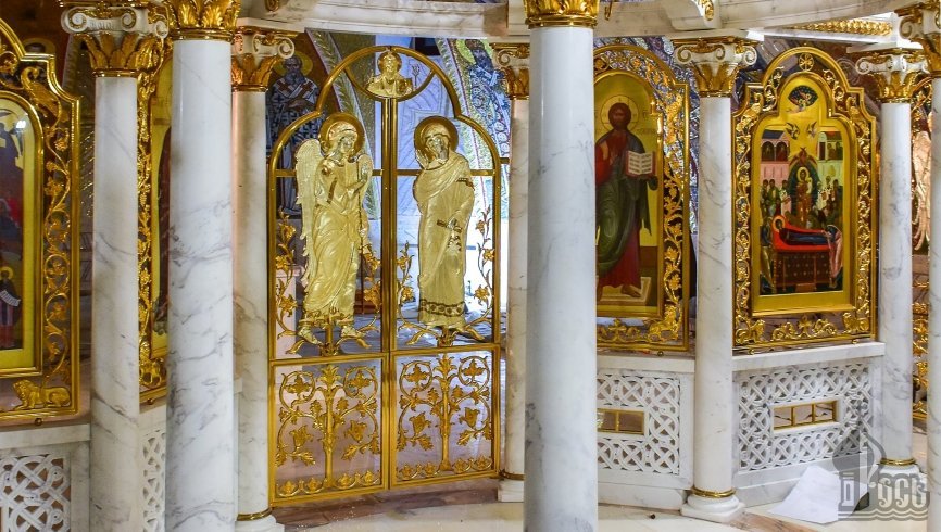 Мраморный иконостас в новом Благовещенском храме Серафимо-Дивеевского женского монастыря.