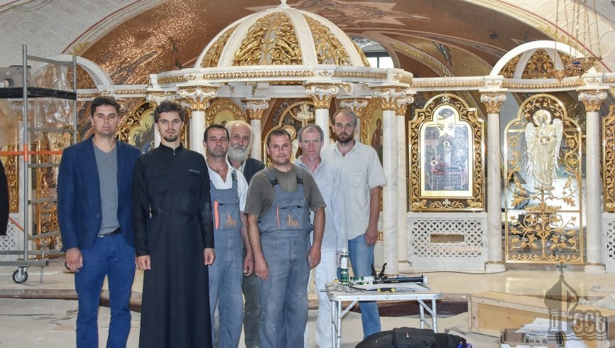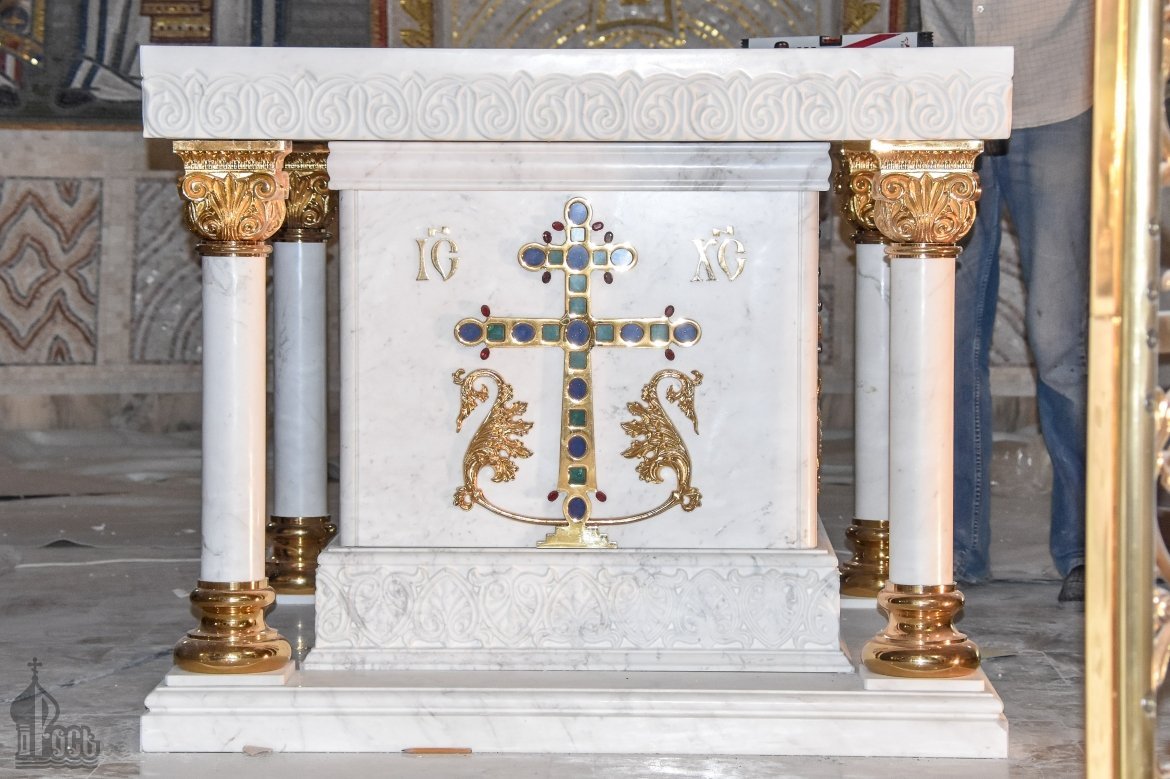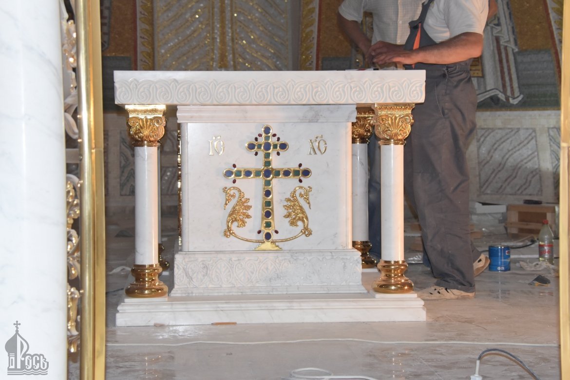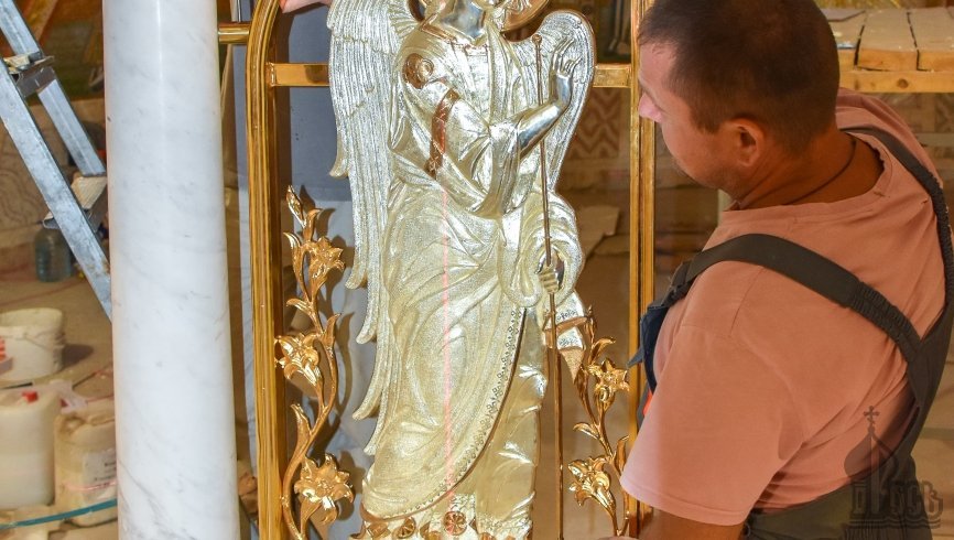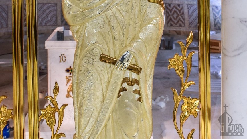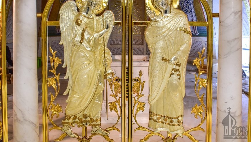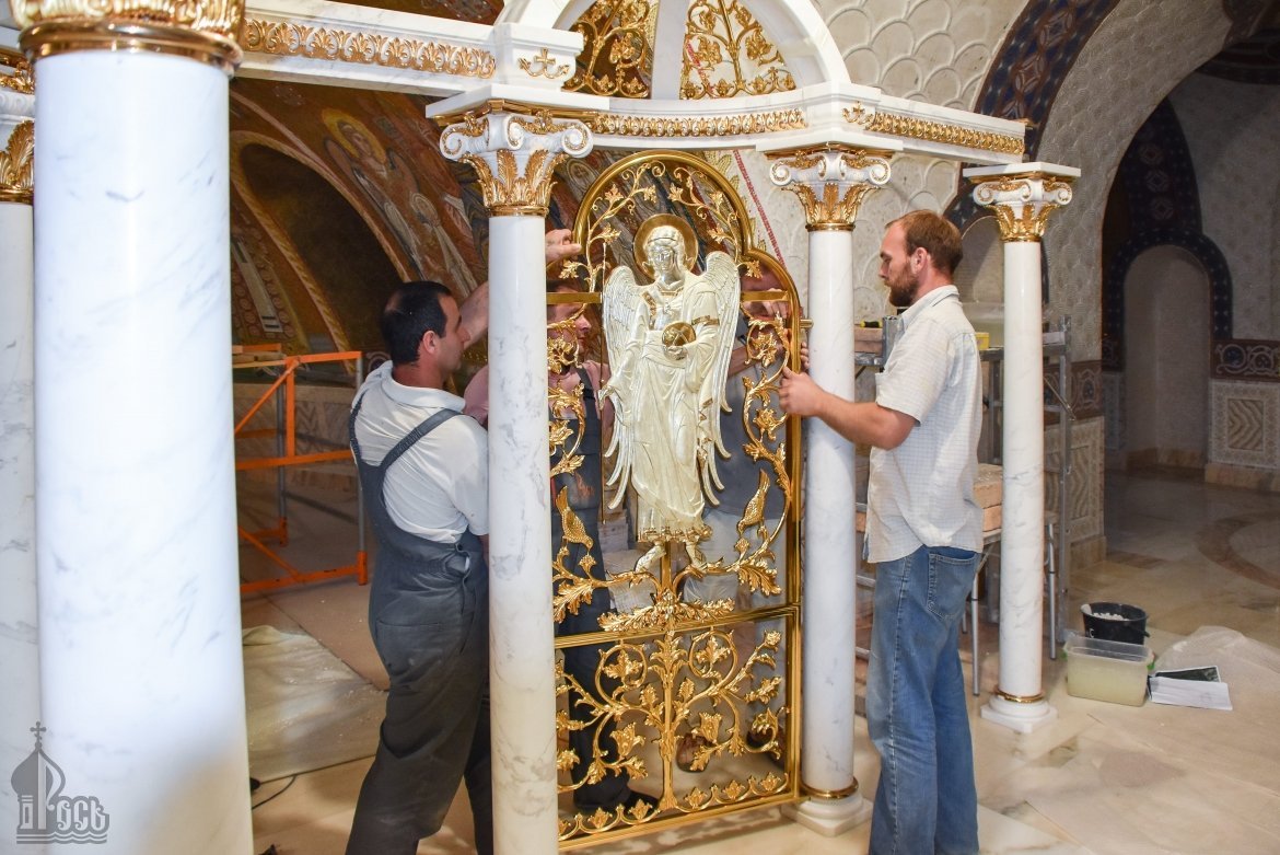 Мраморный иконостас в новом Благовещенском храме Серафимо-Дивеевского женского монастыря.