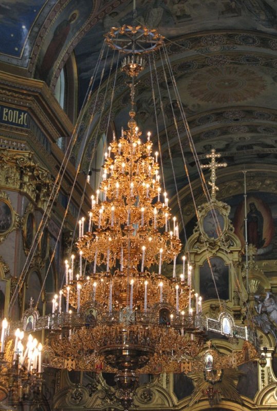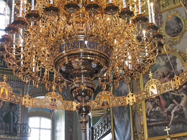 Семиярусное паникадило в Успенском соборе Почаевской лавры