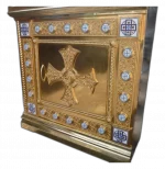 Стіл панахидний дерев’яний на 88 свічок із дерев’яною тумбою та позолоченими елементами №1